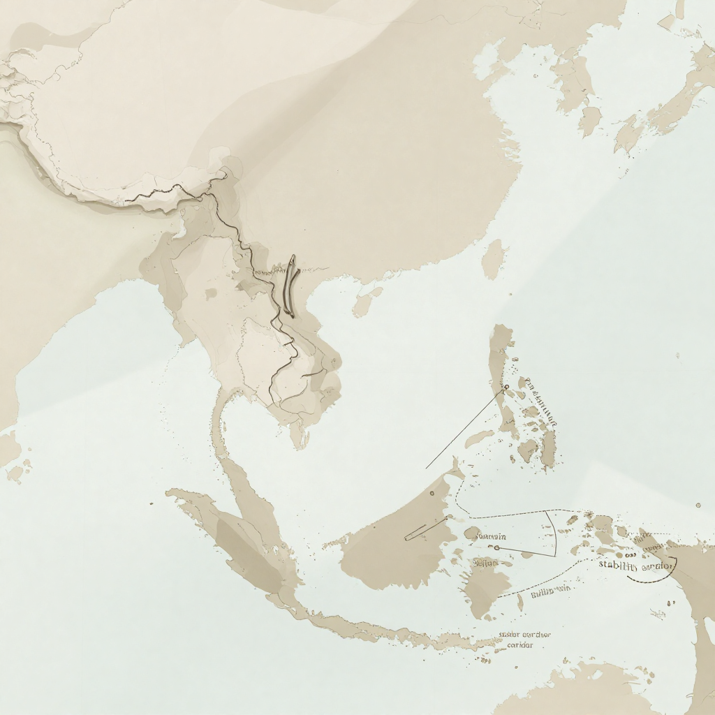![flat color political map, clean cartographic style, muted earth tones, no 3D effects, geographic clarity, professional map illustration, minimal ornamentation, clear typography, restrained color coding, a flat 2D political map of Southeast Asia, paper surface with faint creases and ink smudges from recent editing, light from above casting soft shadows on annotated coastline routes, atmosphere of quiet revision—where the South China Sea boundary is partially crossed out in pencil and redrawn with a heavier ink line extending from one coast guard standoff point to another, a dotted 'stability corridor' labeled toward Manila, another line pointing to Beijing, all in clean cartographic style with minimal color differentiation between territories [Z-Image Turbo] flat color political map, clean cartographic style, muted earth tones, no 3D effects, geographic clarity, professional map illustration, minimal ornamentation, clear typography, restrained color coding, a flat 2D political map of Southeast Asia, paper surface with faint creases and ink smudges from recent editing, light from above casting soft shadows on annotated coastline routes, atmosphere of quiet revision—where the South China Sea boundary is partially crossed out in pencil and redrawn with a heavier ink line extending from one coast guard standoff point to another, a dotted 'stability corridor' labeled toward Manila, another line pointing to Beijing, all in clean cartographic style with minimal color differentiation between territories [Z-Image Turbo]](https://081x4rbriqin1aej.public.blob.vercel-storage.com/viral-images/7f34b2d6-6804-4001-9303-c96ae12b3fcc_viral_1_square.png)